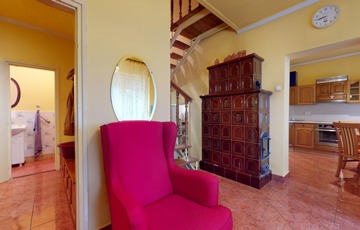 Innen egy fél emelettel feljebb lett megépítve egy hatalmas nappali, ahonnan az utcafrontra néző, nagy erkélyre lépünk ki. A ház hűtéséről egy 6 KW-os klíma berendezés gondoskodik. Meseszép a kilátás a Tokaji-hegyre.