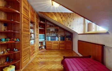 Feljebb haladva lett kialakítva egy újabb fürdőszoba és két hálószoba, plusz egy gardrób szoba is helyet kapott.
