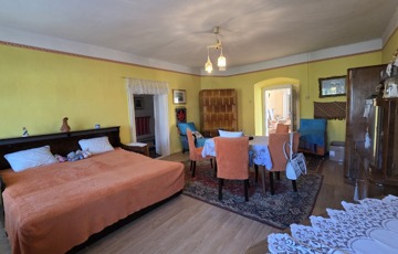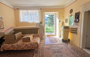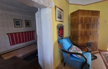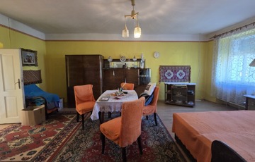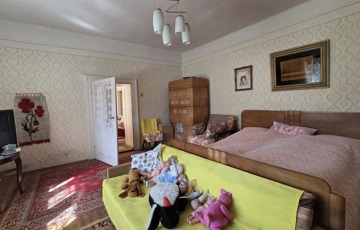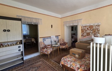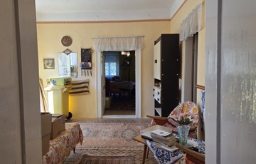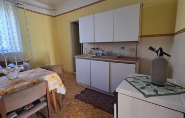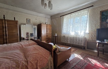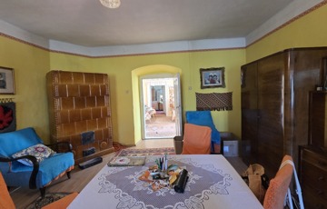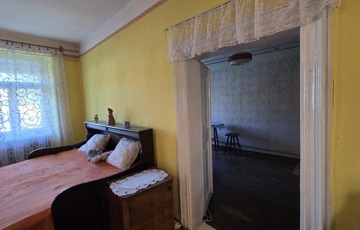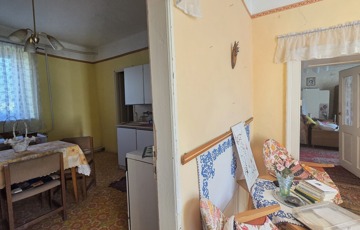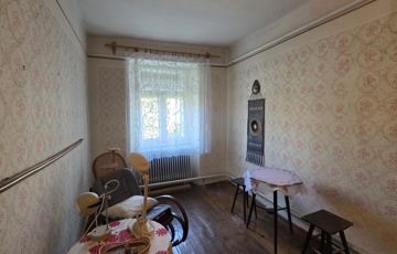 Belépve egy tágas előszobában találjuk magunkat. Innen érhető el mindhárom szoba, illetve a konyha. Szobái óriásiak, a legnagyobb 28 m2, tehát akár még több szoba is kialakítható benne. 3 cserépkályhával oldották meg a fűtést, de gázkazánt is találunk benne. Az ingatlan eredetileg részben körbejárható volt, azonban a konyhát és a szobát összekötő ajtót megszüntették. Bármikor újra nyitható.