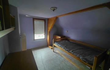 Azalsó szinten egy tágas nappali, 2 szoba, WC, fürdőszoba külön helyiségben, valamint egy konyha található. A ház 2 bejárattal rendelkezik.