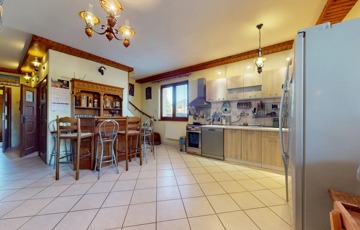 Hatalmas amerikai konyhás nappali a ház szíve, ahonnan közvetlen kijárat vezet a 25 nm es körpanorámás teraszra. A tér világos, otthonos, és ideális nagyobb családi összejövetelekhez is.