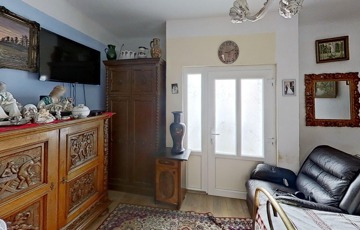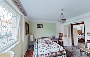 A lakás igazán élhető hiszen egy nagy, egy légterű nappali/étkező/konyha mellett az abból nyíló 3 külön bejáratú szoba áll még rendelkezésre. Ezekből a két nagyobb az utcafrontra néz, a kisebb pedig a kert felőli oldalon van. A két nagyobb szoba egyikének közvetlen (bár jelenleg nem használt) kijárata van az utcára.