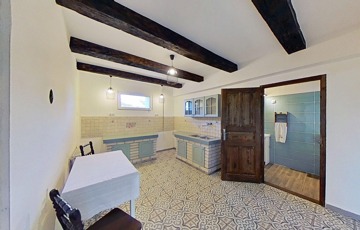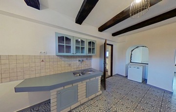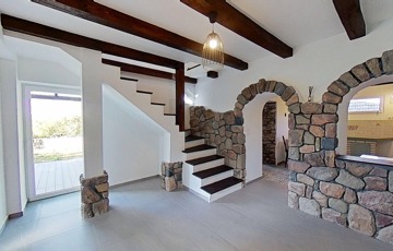 Eladó egyedi megjelenésű, földszint plusz tetőtér-beépítéses, 100 m2 belső hasznos területű, 3 szobás, duplakomfortos, felújított családi ház a Balaton északi partján, Kővágóörsön, elvehetetlen panorámával a Káli-medencére, a Kis-Hegyestűre és a kővágóörsi kőtengerre.