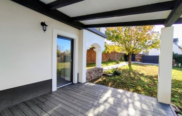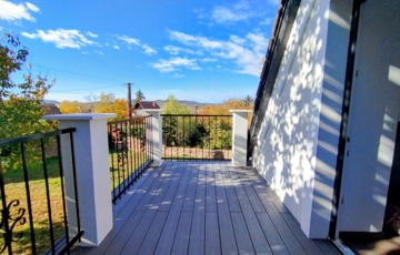 A ház Ny-i tájolású, a szinteket belső lépcső köti össze, az emeleti lépcsőfordulónál 12 m2-es erkélykapcsolattal rendelkezik, a földszinten hangulatos tornácos terasz, valamint egy 12 m2-es fedett terasz került kialakításra. Tájolásának köszönhetően a nyári estéket a naplemente látványa koronázza meg, a megunhatatlan szépségű táj panorámája pedig minden évszakban, minden napszakban más arcát mutatja.