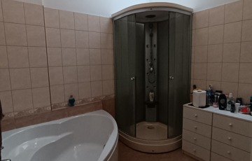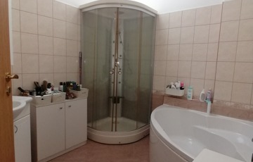 Az emeleten 3-3 hálószoba 1-1 fürdőszoba és külön 1-1 mosókonyha kapott helyet. A fürdőszoba világos, tágas zuhanykabibannal felszerelve.