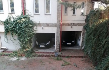 A garázs előtti lejáró viacolorral van burkolva és télen fűthető. A kertben az öntözést kútról oldhatjuk meg.