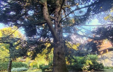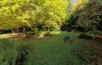 A kert 1667 nm nagyságú, gondozott, számtalan dísznövény, és fenyő található rajta. A telek arányos téglalap alakú, az épület a telek középső részén helyezkedik el.