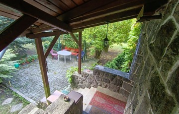 Dobogókő csendes kis mellékutcájában, az Arany János utcában, árnyas fák között húzódik a kétszintes, kívülről terméskő burkolattal védett családi ház, a tulajdoni lapon „hétvégi ház” megjelöléssel.