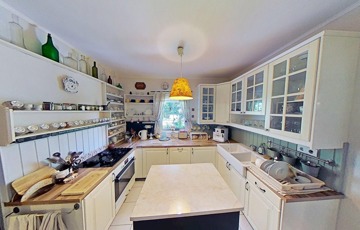 Keszthely közvetlen szomszédságában keresi új tulajdonosát ez a Balaton-felvidéki otthonosság minden stílusjegyét magán hordozó, 1997-ben épült két lakrészes, 166 m2 belső hasznos területű, 2 szintes, pazar 7 szobás, 2 fürdőszobás, felújított ház, mely 2079 m2-es telken fekszik.