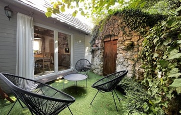 Kertje egy komplett zöld oázis, melynek a felét erdő alkotja, ennek köszönhetően sajátos mikroklímája alakult ki, az utcafronton hatalmas hamisciprus sövény határolja.A kert kiépített része tudatos tervezés eredménye: kerti ösvénnyel, öntözőrendszerrel, magaságyásokkal, és számtalan olyan növényfajjal lett beültetve, mely a jelenleg változó éghajlatnak ellenáll.