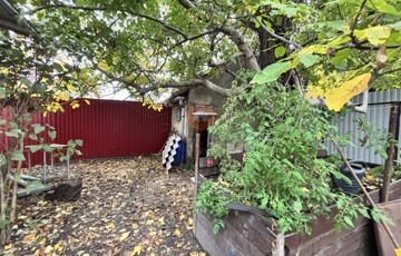 Az előkert mellett két kisebb udvari tároló és autóbeállási lehetőség is tartozik az ingatlanhoz.