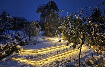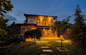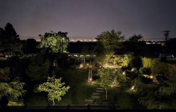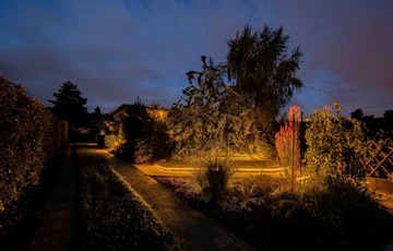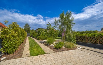 A telken mediterrán fű, autómata öntözőrendszer, fúrt kutak és rengeteg különleges fa és cserje saját gyökéröntözéssel.