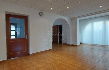 Az ingatlan jelenleg irodaházként működik, de nagyobb család részére is kitűnő életteret nyújt. A telek nagy része térkővel burkolt, ahol 6 autó parkolására van lehetőség. A garázs egy raktárhoz/üzlethelyiséghez kapcsolódik, melynek tetőtere is beépített.