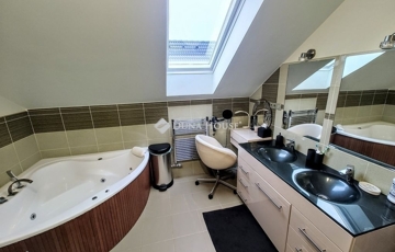 A korszerű, kiváló hőszigetelésű nyílászárók elektromos redőnnyel és szúnyoghálóval felszereltek. A kellemes hőérzetet padlófűtés, illetve több helyiségben elhelyezett inverteres klímák biztosítják, így az otthon minden évszakban kellemes hőérzetet nyújt. A 20 négyzetmétert meghaladó, hangulatos terasz ideális helyszíne családi összejöveteleknek és hétvégi pihenésnek. A 30 négyzetmétert meghaladó fűtött garázs két nagyobb méretű autó számára is kényelmes parkolást kínál, emellett további tárolási lehetőséget biztosít. A ház rezsiköltsége minimális, köszönhetően a telepített napelemrendszernek, amely hosszú távon is jelentős megtakarítást biztosít.