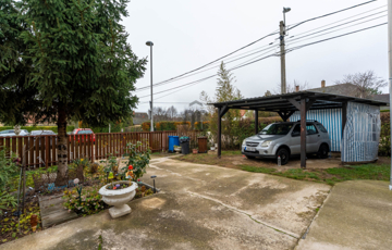 A garázs a lakótérből is közvetlenül megközelíthető. Az udvaron tetővel ellátott felszíni parkoló, sütögetésre alkalmas rész és tároló is található. A sorházzal szemben több közterületi parkolóhely áll rendelkezésre.