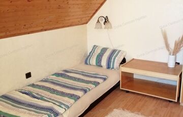 1. 110 m2-es lakás / A földszinten nappali, konyha, étkező, szoba, fürdőszoba , míg a tetőtérben kis nappali, kettő szoba, fürdőszoba, balatoni panorámás erkély lett kialakítva. /