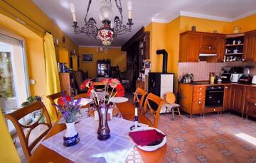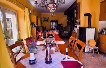 A ház 250 négyzetméteres, négy tágas szobája, társalgója, galériája különleges hangulatot nyújt.