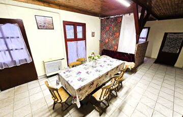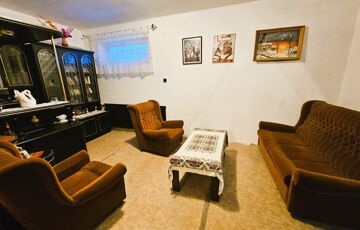 A fűtést gázkonvektorok, vízteres kandalló radiátorokkal és vegyestüzelésű kazán biztosítják, a melegvizet gázbojler adja. A praktikus elrendezésű házban nappali, három szoba, konyha-étkező, spájz, fürdőszoba és külön WC található.