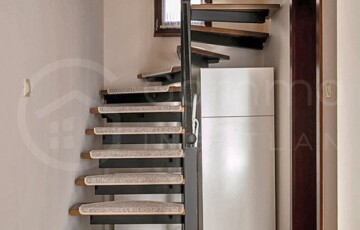 A ház egy 450 m2-es, rendezett telken helyezkedik el, két szinten biztosítva a kényelmes életteret: