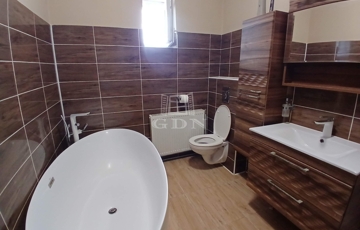 • felújított, modern stílusú fürdőszoba szabadon álló, ovális káddal