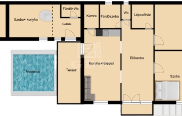 • csigalépcsőn megközelíthető, fával burkolt, hangulatos GALÉRIA