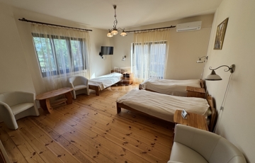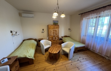 Az ingatlan főbb jellemzői: a lakóépület, ami 2015-ben lett felújítva 130 nm, amiben egy tágas étkező-közösségi tér, teljesen felszerelt, gépesített konyha, 3 nagy méretű szoba (mindegyik saját fürdőszobával) kapott helyet,a hátsó részen pedig egy 20 nm terasz.