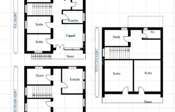 - A tágas, világos elrendezésű otthon 5 szobát, 2 konyhát, valamint 2 fürdőszobát WC-vel foglal magában.