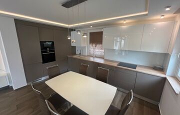 Egyedi, helyszínen készült konyhabútor, magasfényű frontokkal és BOSCH gépekkel