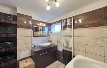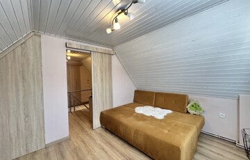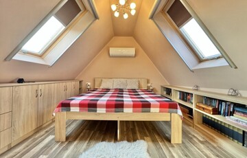 Kaposváron a Zselic kertváros egyik csendes kis utcájában található, aszfaltos úton megközelíthető kedves hangulatú, otthonosan kialakított lakóházként használt hétvégi ház eladó. Az épület alsó szintjén nappali-étkező, konyha, fürdőszoba-wc helyiség található, míg a padlástérben további 2 szobát alakított ki a tulajdonosa. Az épület - ahogyan a képeken is látható - nagyon jó műszaki állapotban van, a nyílászárók műanyagok, az épület kívülről 10 cm. hőszigetelést kapott, a fűtése vegyes központi fűtéssel megoldott, a nappaliban és a két felső szobában 1-1 légkondicionáló van felszerelve a komfort növelése miatt, illetve a meleg vizet intelligens Ariston villanybojler biztosítja, illetve kamerarendszer van kiépítve. A kazánház mellett mosókonyha, és további műhely is található. A ház alatt 8 m2-es pince található, az önálló kerti lakrész klímával fűthető és egy szauna is megtalálható mellette. Az igényesen kialakított udvarban 2 személyautó részére fedett beálló van. Telek: 772