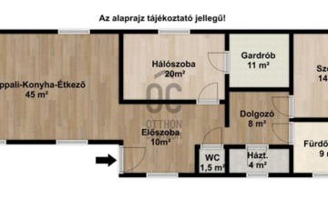 A 120 m²-es lakótér jelenleg nappali-központú kialakítással rendelkezik, a belső elrendezés pedig igény szerint több hálószobás elosztásra is alakítható.