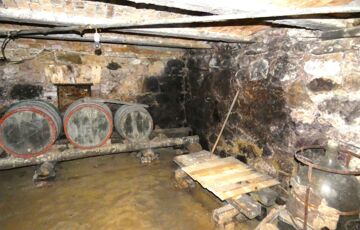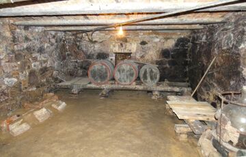 A garázs mellett található egy kamra, melyből nyílik a 20 nm-es borospince. A pince terméskőből és téglából épült.