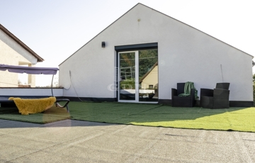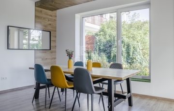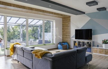 A ház jelenleg 5 szobás, a kialakítás lehetőséget ad további terek létrehozására – anélkül, hogy az összhatás sérülne.