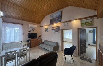 Nagyatádon csendes utcában található hangulatos kialakítású, korszerű energetikájú, felújított 96 m2-es családi ház - akár műhelynek is alkalmas - garázzsal együtt eladó. A lakóházban beépített világos előtér, magas belmagasságú nappali-konyha-étkező, 2 szoba, fürdőszoba, wc, kamra helyiségek kerültek kialakításra. A lakóház fűtése Ariston típusú gázkazánnal, továbbá vegyestüzelésű kazánnal megoldott, valamint légkondicionáló is felszerelésre került. Az épület a 2000-es évek elején teljes felújításon esett át, továbbá a tulajdonos új műanyag nyílászárókat építtetett be, 15 cm-es hőszigetelést rakatott fel, illetve 5 KW-s napelemeket telepített. Az udvaron 36 m2-es fűtött garázs-wc-kézmosó helyiség, és 2db szerszámok-fa tárolására alkalmas tároló-kazánház, továbbá az udvaron kemence van. Telek: 548 m2