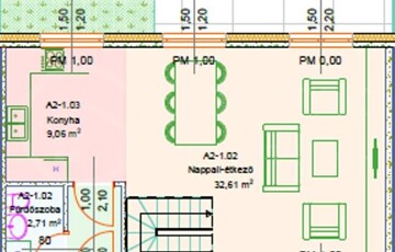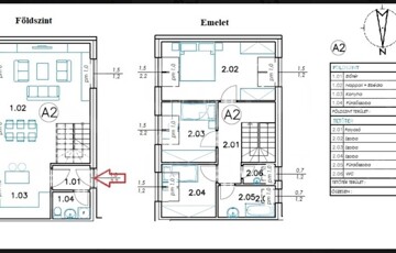 • Földszint: Tágas, napfényes amerikai konyhás nappali étkezővel, valamint egy vendég mosdó-WC.