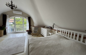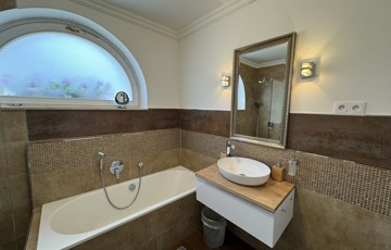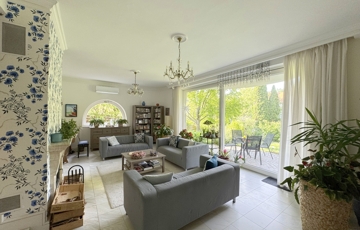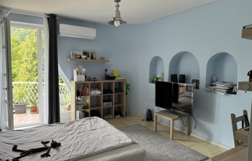 Több gyermekkel költözők számára kifejezetten ideális, átgondolt, praktikus elrendezésű, tágas szobákkal rendelkező kifogástalan állapotú, magas minőséget képviselő és otthonos melegséget árasztó ház. Vízszintes könnyen megközelíthető mellékutcában fekvő, déli fekvésű ház, csodálatos panorámával rendelkezik a környék dombjaira. A teljesen felújított 7 szobás önálló családi ház egy fenntartható méretű, 600 négyzetméteres telken épült. Tökéletes elrendezés és a hatalmas üvegfelületeknek köszönhetően természetes fényben úszó tágas terek jellemzik Mivel a házat építészek tervezték és építették saját célra, így a műszaki tartalom a funkcionalitás és az esztétikum tökéletes összhangját nyújtja. . Átépítése során magas minőségű prémium anyagok kerültek felhasználásra. A számos tároló és gardrób helyiség tökéletesen alkalmas arra, hogy az életünk során felhalmozódó holmikat kényelmesen elhelyezzük. A ház földszintjén helyezkedik el a közösségi élet tere , a konyha, étkező, ami egy szinteltolással és a kandallóval kapcsolódik a közvetlenül kertre nyíló nappalihoz. A ház legfelső szintjén egy teljes szülői lakosztály található. A tágas, csodálatos panorámájú erkélyes szobához, saját gardrób és fürdőszoba tartozik.