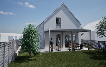 - lakótér 97nm: fsz_ amerikai konyhás nappali-étkező, fürdőszoba és egy hálószoba található. A felső szinten két hálószoba és egy fürdőszoba kerül kialakításra.