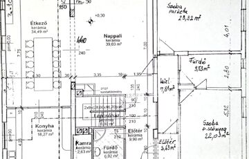 -Földszint: 2 nagyméretű szoba + 2 fürdőszoba+nappali+konyha+étkező+kamra+előtér