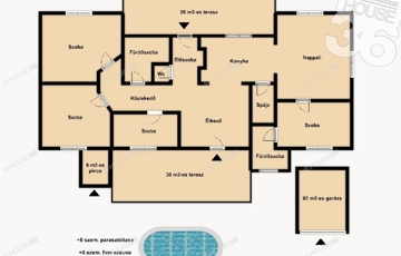 -parkosított udvar, öntözőrendszerrel ellátott (3 körös, 97 szórófejes)