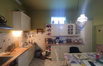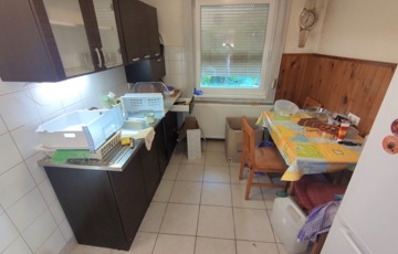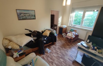 A lakás közepes állapotban van, de műszakilag fel lett újítva. A két lakás külön mérőórákkal rendelkezik. A elektromos hálózat (új biztosíték tábla) és a fűtés rendszer 10 éven belül lett korszerűsítve. Új típusú Western gázcirkó gondoskodik a fűtésről, amit egy vegyes tüzelésű kazán egészít ki. A konyhában a gépek (sütő, mosogató gép, bojler, hűtő) 1,5 éve lettek lecserélve. Műanyag bejárati ajtó újszerű, műanyag redőnyös ablakok lettek kialakítva mind a két lakrészben. Az eresz csatorna cseréje is megtörtént már. A fűtés átalánydíja az egész ingatlanban 70-80 ezer ft/hó. A belmagasság 3 méter.