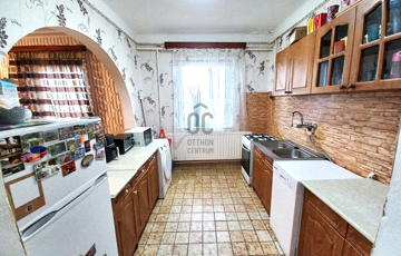 - alapterülete 86 nm, mely nappali, 2 tágas hálószoba, konyha, kamra, fürdőszoba, előszoba, külön WC, elosztású