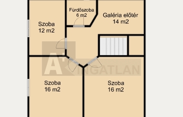 Tetőtér: 3 szoba, fürdőszoba tuskabinnal és wc-vel, galéria