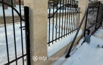 A nagy kapu elektromos tolóajtós, így az autóból ki sem kell szállni kinyitni a kaput.