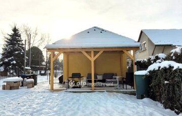 A házhoz egy 15m2-es fedett TERASZ is tartozik, ahol kényelmesen lehet pihenni, társalogni, akár grillezni is.