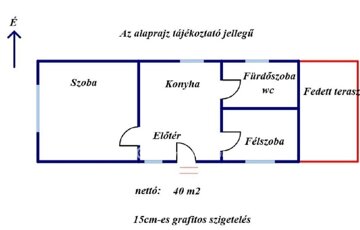 Nettó, fűtött hasznos alapterülete: 40m2+ 7m2 teasz fele (14 m2 terasszal rendelkezik).