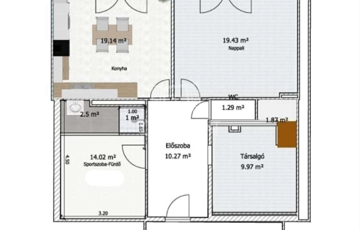 - Nappali-étkező-konyha