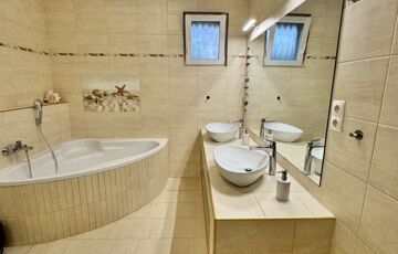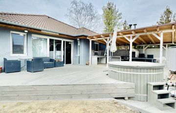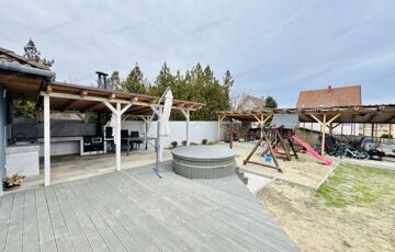 A kertben kialakított pihenőzóna és a dézsafürdő igazi kikapcsolódást biztosít, a tágas udvar pedig ideális családi programokhoz vagy akár további fejlesztésekhez.