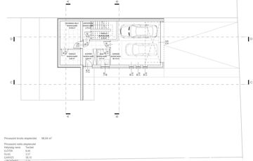 Alsó szinten kialakításra került, egy 38 m²-es dupla garázs, előtér, fürdő, két tároló, valamint a hőszivattyús fűtési és meleg víz ellátást biztosító gépészeti helyiség.