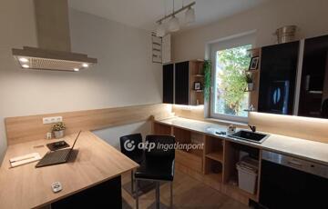 Kertvárosban, csendes környéken, jó ízléssel megépített, igényes, napfényes, berendezett konyha-étkezővel ellátott lakás saját - még alakításra váró - kertrésszel. Az épület kétszintes (földszint + emelet), a hátsókertben tartozik hozzá egy összesen két gépjármű elhelyezésére alkalmas fedett-nyitott tároló is. Maga a lakás a földszinten tágas konyha-étkezővel és egy hálóval, valamint zuhanyzós fürdővel és külön wc-vel rendelkezik, míg az emeleten egy nagy, kertre néző teraszos nappalival és egy másik hálóval épület. A nappali délkelet-délnyugatra tájolt, a terasz keleti tájolású. A háló mellé még egy fürdő-wc tartozik. A két szintet elegáns lépcső köti össze, a jól szerkesztett és szépen megvilágított belső lépcső kevésbé fiatal lakóknak is kényelmes közlekedést biztosít. A lakásba egy burkolt teraszról léphetünk be, erről áttekinthetjük a saját kertrészt is.