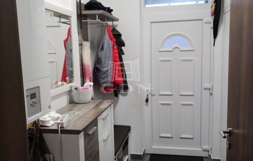 Az előszoba és a közlekedő beépített szekrényei nagy tárolási kapacitással rendelkeznek.