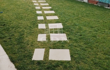 Az ingatlanhoz elszeparált, saját 216 nm-es telekrész tartozik, most épülő fedett kocsibeállóval, automata kapuval.